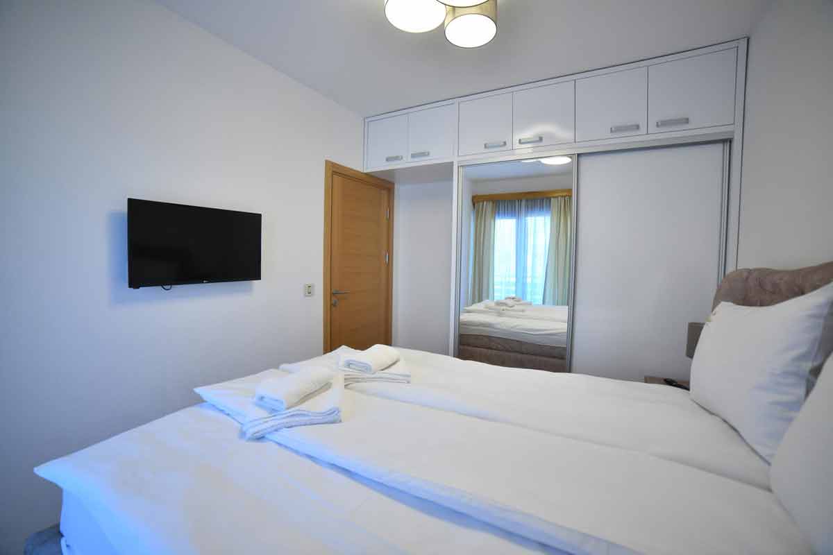 Apartman je opremljen Wi-Fi internetom, TV-om, liftom, a pušenje je dozvoljeno samo na terasi. Gostima su na raspolaganju recepcija, fitness centar, veliki parking pod video-nadzorom i mogućnost iznajmljivanja kvadova po povoljnim uslovima.