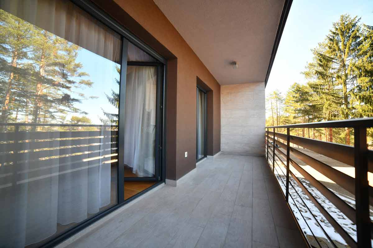 Iz dnevne i spavaće sobe izlazi se na prostranu terasu sa pogledom na panoramu borove šume, gde gosti mogu uživati u tišini, jutarnjoj kafi i svežem planinskom vazduhu.