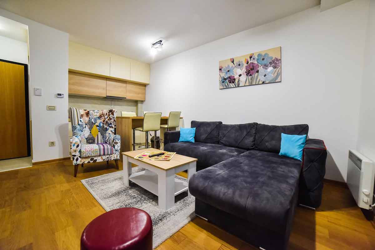 Apartman je opremljen Wi-Fi internetom, TV-om, funkcionalnom kuhinjom, liftom i svim pogodnostima koje garantuju bezbrižan boravak. Gostima su na raspolaganju recepcija, fitness centar, parking pod video-nadzorom, kao i mogućnost iznajmljivanja kvadova po posebnim uslovima.