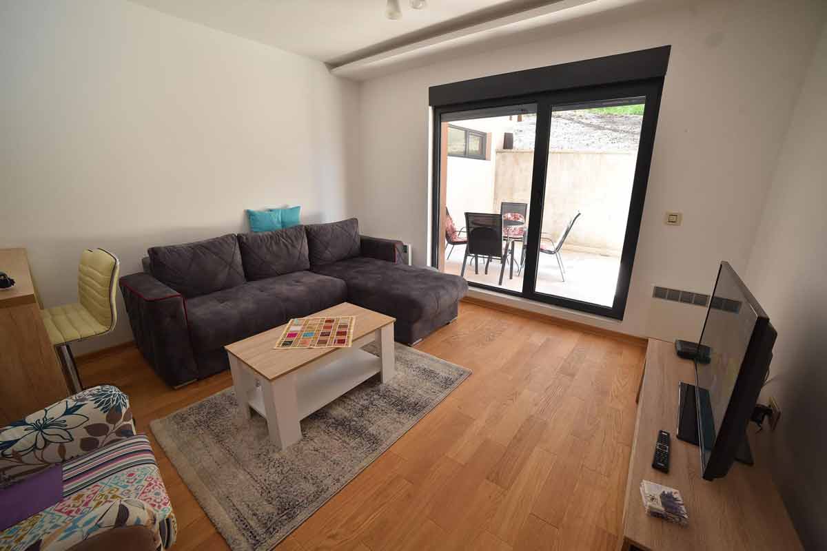 Enterijer odiše harmonijom i prijatnošću. Svetao dnevni boravak povezan je s kuhinjom i trpezarijom u otvorenom konceptu, stvarajući prostran i ušuškan ambijent. Udobna garnitura, dekorativne slike i pažljivo birani detalji doprinose osećaju doma već pri prvom koraku.