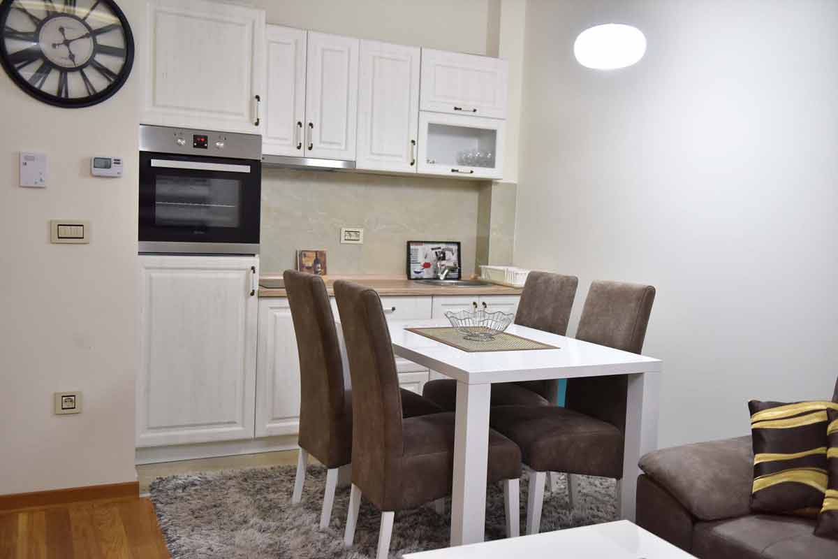 Apartman S1-7 u okviru moderne vile nalazi se na sunčanoj, južnoj strani objekta — savršen spoj topline doma i modernog komfora. Sa terase se pruža prijatan pogled na borovu šumu i prepoznatljivu vilu Pinu, dok jutarnje sunce ulazi u dnevnu sobu i stvara osećaj mira i odmora.