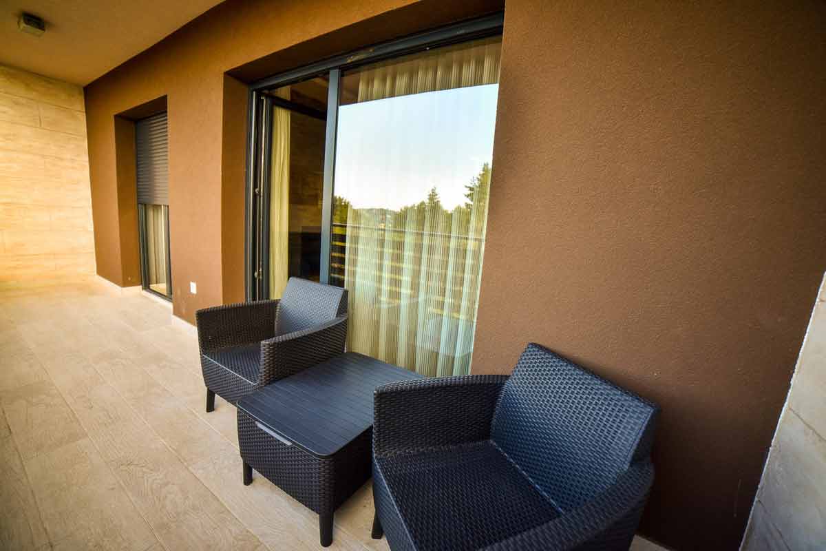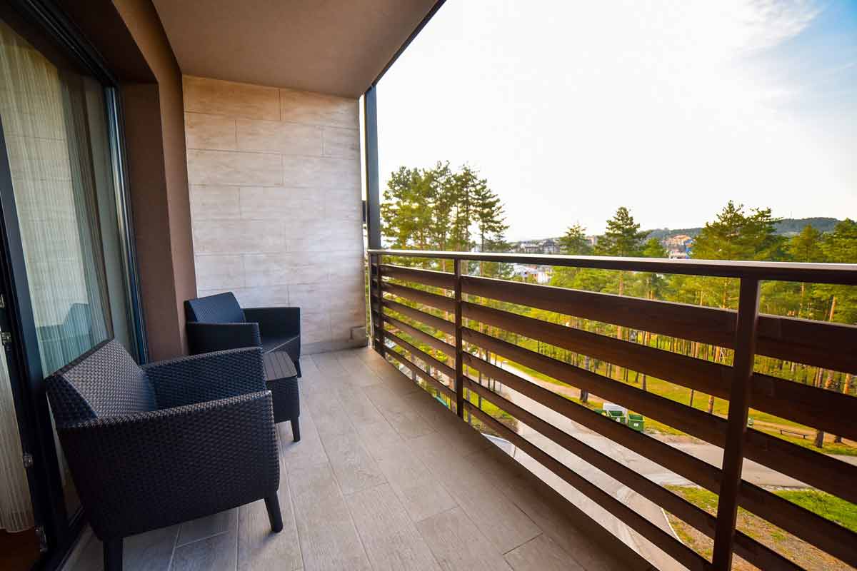 Sa terase se pruža pogled na zlatiborski pejzaž i krošnje borova – pravo mesto za jutarnju kafu i večernji odmor. Apartman poseduje i garažno mesto, čime je vaš boravak potpuno bezbrižan.