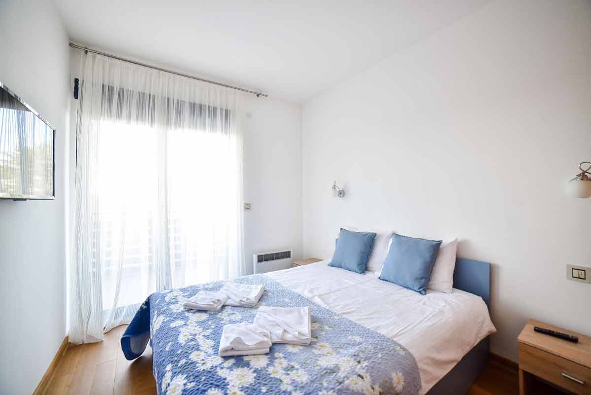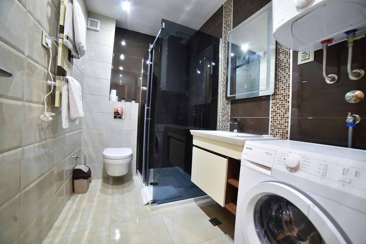 Spavaća soba odiše spokojem i elegancijom – bračni krevet sa čistim belim posteljinama i prozorom koji gleda ka prirodi obezbeđuje miran san. Kupatilo je moderno uređeno, sa tuš-kabina sistemom, mašinom za pranje veša i grejnim držačem za peškire.