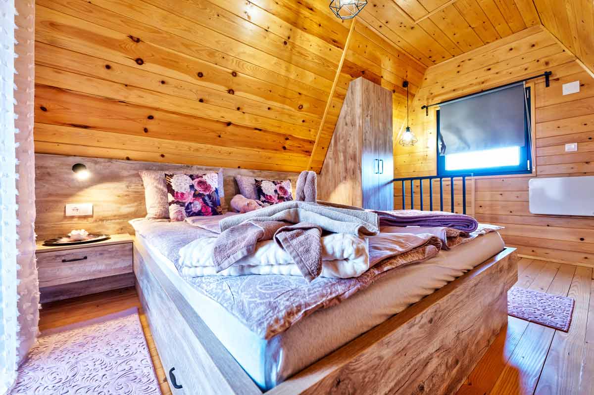 Unutrašnjost koju nudi Brvnara Helena Zlatibor pažljivo je uređena kako bi gostima pružila osećaj potpune izolacije od stresa, uz zadržavanje svih pogodnosti savremenog života. Prostrana spavaća soba sa bračnim krevetom nudi onaj preko potrebni odmor nakon dana provedenog u istraživanju staza zdravlja. Svaki detalj od drveta unosi toplinu, dok dnevni boravak opremljen modernim TV-om i udobnim nameštajem stvara atmosferu idealnu za duge razgovore ili opuštanje uz knjigu.